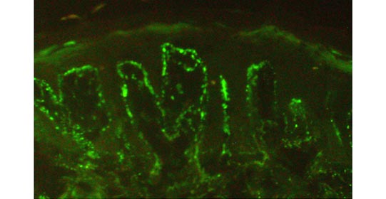 Intercellular granular deposits of IgG in pemphigus vulgaris